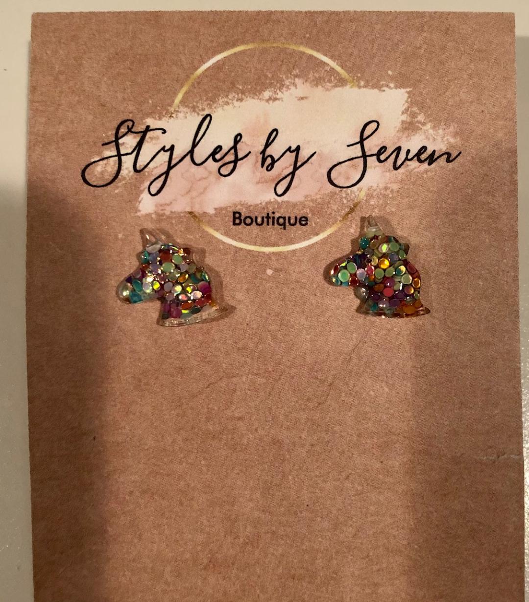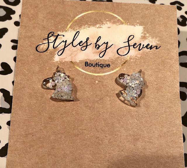 Unicorn Stud Earrings with Glitter inside